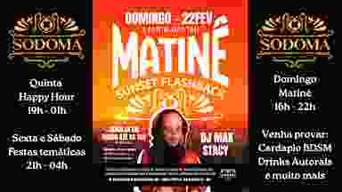 Neste domingo, das 16h às 22h, o Sodoma entra no clima da nostalgia com DJ Max Stacy comandando a pista em um sunset cheio de energia e clássicos que atravessam gerações. É dia de reviver grandes momentos, cantar junto, dançar sem pressa e deixar o som conduzir o pôr do sol.