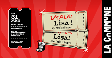 🎭 Spectacle d’impro musicale - Dans le cadre de la semaine de l'impro. Le 31 mars, vous assistez à un spectacle totalement improvisé proposé par la troupe LA LISA. Ici, rien n’est écrit à l’avance : les comédiens et comédiennes créent en direct des scènes… et des chansons ! À mi-chemin entre théâtre d’improvisation et comédie musicale, ils inventent sous vos yeux des histoires imprévisibles, avec mélodies et paroles improvisées. 🕣 20h30 : ouverture de la soirée 🎬 Première partie (40-45 min) : spectacle en immersion ☕ Entracte 🎵 Deuxième partie (40-45 min) : reprise du spectacle Un show vivant, spontané et unique : chaque représentation est différente, et vous ne verrez ce spectacle qu’une seule fois… parce qu’il n’existera plus jamais de la même manière. ✨