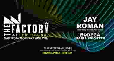 The Factory Aftter hours Bringing the iconic Ibiza party spirit to the heart of Brooklyn JAY ROMAN talent and a renowned DJ From Brooklyn Miami and Ibiza - will be taking over the decks, delivering those irresistible vibes.alongside HOT LOCAL LINE UP - BODEGA - MARIA Sifontes Make sure to secure your advanced tickets to save and party till dawn! Not To be missed Doors open 3:00am - late