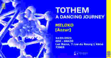 Follow @Tothem_music sur Instagram pour accéder à la soirée! https://www.instagram.com/tothem_music/ AU PROGRAMME : Afro house et techno Mélodique. Avec un de nos artistes préférés pour bien commencer l’année : @melokolektiv Voyage autour du Tothem de 00h à 4h30 @lesbainsparis. Venez danser ! Vous pouvez revoir l’interview de Meloko sur notre page. A dancing journey, Around the TOTHEM. ---------- TIMETABLE ----------- TBA ----------- LINE UP ------------- Melokolektiv. [Azzur]: Basé à Marseille en France, Meloko a commencé son voyage en 2014. Il a signé sur des labels tels que Compost Records, Get Physical Music, Sum Over Histories, Kindisch et bien sûr OFF Recordings, dont il était le directeur artistique et le manager du label. Aujourd'hui directeur de son propre label AZZUR, fondé en 2016 avec Konvex & the Shadow, Meloko est un artiste accompli ! Il propose un univers mélodique riche allant de l'indie dance à la techno mélodique, en passant par l’afro house, toujours coloré et plein de surprises. https://soundcloud.com/tothemmusic/tothem-sets-006-melokolektiv https://soundcloud.com/melokolektiv/meloko-sunset-mix-fall-2022 Tothem: - Gallo. [Mumbai Records]: https://soundcloud.com/galloalexandre https://soundcloud.com/tothe.../tothem-podcasts-by-gallo-001 - Varwa: https://soundcloud.com/varwa https://soundcloud.com/tothemmusic/tothem-sets-004-varwa - Yensü: https://soundcloud.com/dj-yensu https://soundcloud.com/tothemmusic/01-rec-2021-08-23 -------INFOS PRATIQUES ---------- Follow @Tothem_music sur Instagram - venez tôt ! https://www.instagram.com/tothem_music/ FREE - lieu se réserve le droit d'entrée LES BAINS DOUCHES - 7 rue du Bourg l'Abbé 75003 Paris 01 42 77 07 07 Artwork by @glen.hellio Curated by @AgenceLaRiposte
