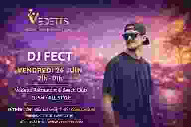 🔥 VEDETTS 🔥 C'EST LE SUMMER ALL STYLE 🎧 DJ FECT aux platines 🕘 21h → 01h 📍 Vedetts Restaurant & Beach Club Réserve ta soirée 🚀