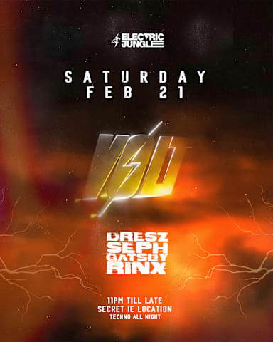 ⚡ VOLT – TECHNO ALL NIGHT ⚡ Electric Jungle presents VOLT a late-night techno experience in the Inland Empire. Driving, hypnotic, high-energy techno from open to close. We’re transforming a secret IE location into a raw, warehouse-style environment built for the heads. Proper sound. Dark atmosphere. Real movement. If you’ve been waiting for something that actually feels underground. This is it. Saturday, February 21 11PM – Till Late Secret IE Location (address sent day-of) 21+ to enter (valid government ID required) Lineup: Dresz Seph Gatsby Rinx Arrive early. Stay late. This is VOLT.