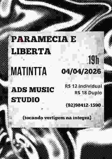 E mais uma vez na nossa segunda casa 💜 PARAMECIA TOCANDO O NOSSO PRÓXIMO DISCO "VERTÍGEM" NA ÍNTEGRA!!! 🌌 COM OS NOSSOS AMIGXS DA @matinttaband e @_libertarse_ com o melhor COVER DE RANCORE 🔥 Ingressos por pix com (9298412-1590 Pedro Henrique) Ingressos Shotgun link da bio das bandas do rolê No @adsmusicstudio a partir das 19h