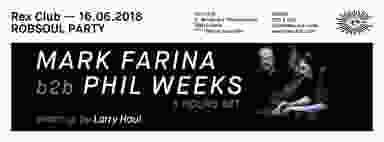- Robsoul Recordings Night: Mark Farina b2b Phil Weeks, Larry Houl - ▬▬▬▬ LINE UP ▬▬▬▬ Mark Farina b2b Phil Weeks (4HOURS SET) RA: