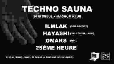 On vous l’a vendu lors de notre retour fracassant au mois d’août. Il est enfin là, le rendez-vous bimensuel avec le 3615ZBEUL. Welcome to nos soirées : 🚿 TECHNO SAUNA 🚿 Une ambiance survoltée, une musique puissante et enivrante le tout saupoudré de la chaleur du Magnum : La Techno Sauna. Le 3615 ZBEUL s’installe au Magnum Klub pour une résidence qui ne manquera pas de faire grimper le mercure. ============================ 🔊LINE UP 🔊 23h - 5h ✖️25ÈME HEURE ✖️HAYASHI [3615 ZBEUL - NDG] ✖️ILMLAK [VNR AGENCY] ✖️OMAKS [NDG] ============================= 📍56 rue de la Fontaine au Roi - Paris 11 Son & Light refait à neuf ! 🚇: Métro 3 – Parmentier ou Métro 11 - Goncourt 🦠 COVID-19 : - Certificat de vaccination - Test antigénique ou PCR de moins de 72h vous sera demandé à l'entrée. - Résultat en un test pcr ou anti génique attestant du rétablissement du Covid datent d’au moins 15 jours et de moins de 6 mois. 🙌 Gel hydroalcoolique mis à disposition. 🔞 Interdit aux moins de 18 ans. =========================