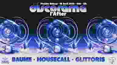 PLACE À l’AFTER DISCORAMA Le rideau tombe . L’after commence. Baume, Housecall, Glittoris sur le Babour. Jusqu’à Midi. 🌈 Baume -