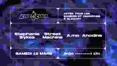 Samedi 12 mars, rendez-vous pour un nouveau plateau techno qui donne chaud avec Stephanie Sykes, Anodine, Street Machine &