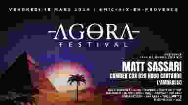 L'Agora Festival est de retour pour sa deuxième édition le vendredi 15 mars 2024 de 19h à 3h au 6MIC à Aix-en-Provence. Cette année, partez à la découverte de la mystérieuse histoire d’Horus, l’une des plus anciennes divinités égyptiennes. Votre voyage sera rythmé par les sets des 20 artistes répartis sur les 2 scènes du festival. Entre dans l'Agora et fais partie des 3000 festivaliers à vivre cette expérience unique. 💿 LINE UP 💿 Matt Sassari · Camden Cox · Hugo Cantarra · L'Amorosso · Alex Vergnet · Alya · Daphne · Eddy de Mart · Galbinus · In My Land · MAD · Raphael Palacci · Romain Dary · Say Less · The Kurfy's · Theo Voyer · Zoz 🎟 TICKETS 🎟 ▷ Early – 17 €* ▷ Regular – 20 €* ▷ Late – 24 €* Pas de billetterie sur place. *Hors frais de location et frais Shotgun. ℹ️ COMMENT VENIR ℹ️ 🚖 EN VOITURE 🚖 ▷ Adresse : 6MIC, 160 Rue Pascal Duverger, 13090, Aix-en-Provence Parking gratuit / Places limitées 🚎 EN NAVETTE 🚎 ▷ NAVETTE GRATUITE : ▷ ALLER (19-23H) : Toutes les 5 min. 📍 Gare routière : 20 Av. Pierre Brossolette, 13100 Aix-en-Provence ▷ RETOUR (1H-5H) : Toutes les 5 min. 📍 Gare routière : 20 Av. Pierre Brossolette, 13100 Aix-en-Provence ▷ LIGNE A : Toutes les 15/30 min. ▷ Arrêt Vasarely, puis 600m (10 minutes) puis cheminement piéton chemin des Aubépines ▷ Arrêt Coq d’Argent, puis cheminement piéton route de Valcros (10 minutes) 🚶‍♂️A PIED 🚶‍♂️ ▷ 40 minutes à pied depuis la Fontaine de la Rotonde ☮️ PEACE & AGORA ☮️ ▷ La musique s'arrête à 02h30 afin de vous laissez le temps de quitter le 6MIC avant 3h ▷ Tout comportement oppressif (agression, harcèlement, paroles et gestes déplacés…), qu’il soit à caractère sexiste, raciste, homophobe, transphobe, grossophobe, validiste (...) est banni de l'Agora Festival. L'Agora Festival se réserve le droit de refuser toute personne ayant des comportements oppressifs et/ou discriminatoires. ▷ L'équipe se tient à votre disposition si vous subissez quelconque type d'agression / harcèlement ou si vous vous sentez mal à l'aise vis-à-vis du comportement d'une personne présente sur nos lieux. 🙋‍♂️ ACCÈS 🙋‍♂️ LE FESTIVAL EST STRICTEMENT INTERDIT AUX MINEURS. Un contrôle d'identité avec pièces d'identités valides et non présentées sur téléphone sera effectué. 🔥 PARTENAIRES 🔥 ▷ NRJ ▷ Booj ▷ Compass ▷ Lydia