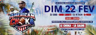 🇺🇸✨ AMERICAN CHOKA – USA VIBES ON THE BEACH ✨🇺🇸 Le Choka Beach t’embarque direction l’Amérique pour une soirée qui s’annonce légendaire 🌴 Prépare-toi à vivre une ambiance explosive 🎧 Aux platines : DJ Bob, Gogolaboite, DJ D-fuzed & DJ M’rick , accompagné de l'équipe Sam Events 🔥 Un Pop Up de lunette sera sur Place avec Kat'zyé Opticien. Une nuit où toutes les vibes se rencontrent… 🔥 Shatta 🔥 Dancehall 🔥 Rap US 🔥 Afro DRESS CODE : USA 🇺🇸 Sous un sunset magnifique, les pieds dans le sable, face à l’océan 🌅 Cocktails, good vibes et énergie américaine au rendez-vous. Une atmosphère caliente, des sons qui frappent, et une seule mission : profiter jusqu’au bout de la nuit. PRÉVENTE 10 euros ( 1 SHOOTER OFFERT ) SUR PLACE 15 euros.