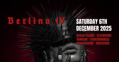 BERLINA IS BACK! The fourth edition of Imperial Club’s kinky, s* positive techno night is here. Once again, we’re ready to deliver dark underground energy and pure industrial techno inside Barcelona’s hottest kinky club. Expect: – Powerful line-up – Immersive scenography and visuals – Extraordinary performances – 300sqm of play room area – Dance until the morning SATURDAY, December 6th 23:59 – 09:00 Imperial Club – C/ D’Aribau 46, 08011 Barcelona Line-up: TYRAXX Ro Duarte B2B KoDedeath SANTYAAA ALBY Dresscode: Dark and kinky. Harnesses, leather, latex, vinyl, lingerie, chains. Street clothes = no entry. Door closes at 4:00