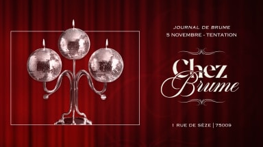 Chez Brume – Acte III Entrée à partir de 22h Nouveau club, même énergie, ambiance envoûtante Tables sur Shotgun ou Service Conciergerie +33 6 51 65 11 32 (WhatsApp uniquement) Instagram – @chezbrume ------------------------------------------------------------------------------------------------------------------------------ Chez Brume – Act III Admission from 10 p.m. New club, same energy, captivating atmosphere Tables on Shotgun or Concierge Service +33 6 51 65 11 32 (WhatsApp only) Instagram – @chezbrume