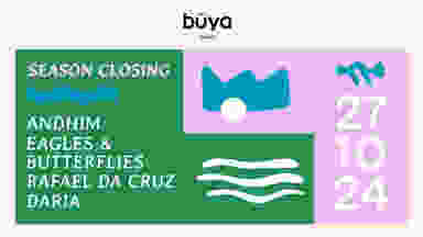 The Grand Finale. As the season draws to a close, we're preparing for one last unforgettable dance at Buya Beach to create memories that will last a pretty while. And who better to join us again than our family members, Andhim, who have already given us goosebumps with their previous set? As a special guest, we welcome Chris Barrett, aka Eagles & Butterflies, renowned for his versatile, genre-defying sets that seamlessly blend melodies with hypnotic rhythms. With releases on iconic labels such as Innervisions, Running Back, Permanent Vacation, and his own Art Imitating Life, he has solidified his position as a key figure in the global electronic music scene. Also gracing the lineup is our resident Rafael Da Cruz, along with Daria, one of Lisbon's shooting stars.