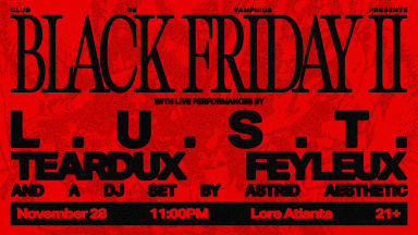 Club de Vampiros presents… Black Friday II with L.U.S.T. (LIVE), Teardux, and Feyleux