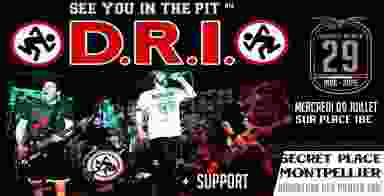 Dans le cadre du SEE YOU IN THE PIT #14 - La TAF et BOOMERANG présentent D.R.I + SUPPORT - Mercredi 9 juillet 2025 – Secret Place – 19h00 - Préventes 15€ hors frais de loc - Sur place 18€ - Adhésion annuelle obligatoire 3€