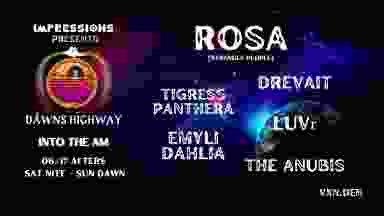 Dawn's Highway is a sonic and scenic cruise into the morning hours where we explore the possibilities of temporal experience intertwined with light, space, and sound. LINE UP: ROSA TIGRESS PANTHERA LUVr EMYLI DAHLIA DREVAIT THE ANUBIS