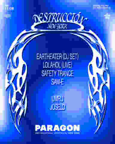 Destrucción: Eartheater (Dj Set), Lolahol (Live), Safety Trance, Sam-E + Umru, Joselo