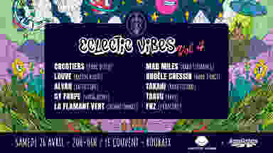 ▬▬▬▬▬ Light'N Vibes ▬▬▬▬▬ Light N'Vibes a le plaisir de vous convier à sa première nocturne au Couvent ! 😜 Pour ce 4ème volume de l'édition, Light'N Vibes met la barre encore plus haut: - 10h de styles variés ! - 6 collectifs de DJ différents dont Patate Douce. - 10 DJ talentueux dont Takahi et Angèle Cressin (Jardin d'Hiver 2025). - Encore plus de jeux de lumière prévu par Agolights. Bref, si t'aime taper du pied jusqu'au bout de la nuit: c'est l'édition à ne pas rater ! Comme d'habitude, tu auras accès à des food-truck de qualité pour te restaurer et reprendre des forces entre deux sets, le tout dans un cloitre magnifique ! ▬▬▬▬▬▬▬▬ LINE UP ▬▬▬▬▬▬▬▬ 20h-21h> Dark Disco - Cocotiers (Light'N Vibes & Maroilles Records) 21h-22H> Raptor House - Louve (Melonade Music) 22h-23h> Latin Core - Alvar (Euphoria) 23h-00H> Hardgroove - Gy Forpe (Patate Douce) 00h-01h> Techno / Trance - La Flamant Vert (Maroilles Records) 01h-02h> Hard Psytrance - Mad Miles (Light'N Vibes) 02h-03h> Hard Dance - Angèle Cressin 03h-04h> Hard Techno - Takahi 04h-05h> Rave - Taavu (Euphoria) 05h-06h> Frapcore - FNZ (Tranche Collectif) 🔥 Cocotiers https://on.soundcloud.com/rEzcDCoFmTcbJeau7 🔥 Louve https://on.soundcloud.com/BawTkRQdVHmUDxjMA 🔥 Alvar https://www.mixcloud.com/Alvar1979/ 🔥 Gy Forpe https://on.soundcloud.com/715bAeP1GpM35csr7 🔥 La Flamant Vert https://on.soundcloud.com/NT9jK 🔥 Mad Miles https://on.soundcloud.com/wt4SGbsdQFw2V8Tg8 🔥 Angèle Cressin https://on.soundcloud.com/yyQVdccDvqHPxMPX8 🔥 Takahi https://on.soundcloud.com/r9ufiRrgAQjza2fX8 🔥 Taavu https://on.soundcloud.com/sXgwAhkHmP6EgQTz8 🔥 FNZ https://on.soundcloud.com/yA32SahPYH291xHKA ▬▬▬▬ OU? QUAND ? COMBIEN ? ▬▬▬▬ 📅 Samedi 26 Avril 2025 ⏱️ 20h — 6h 📍 Le Couvent - Roubaix : 128 Bd de Strasbourg, 59100 Roubaix 🚇 Métro: Eurotéléport 🚗 Parking: Gratuit (nombre de places limitées) 👗 Vestiaire : 2€ (Monnaie uniquement) 🎫 Entrée Payante: Entrée avant 21h00 : 14,89€ (50 premières places Shotgun. ATTENTION ==> si arrivée après 21h00 supplément de 5€ à payer surplace). Standards : 17,5€ (150 places, disponibles jusqu'au 25/04 - 20h00) Last Chance : 19,90€ (100 places, disponibles jusqu'au 26/04 - 20h00) Surplace: 19,90€ ==> CB uniquement, espèce non accepté.