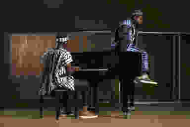 Plus qu’un album, Hors-Temps est une expérience artistique globale et immersive, à mi-chemin entre un concert classique et une performance. Sur cette tournée, conçue comme un voyage en 7 chapitres, Elom 20ce ne rappe pas: Il dit des histoires debout d’une voix pleine et puissante, accompagné du pianiste de jazz ghanéen Kamarou Kwaku Anthony.