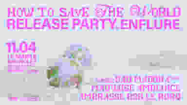 🌎 Enflure vous invite à la release party de son premier album « how to save the world » le 11 avril 2025 au Sample à Bagnolet ! L'occasion de vous présenter ce nouveau projet aux côtés de ses ami/es : ★ Enflure (live) ★ Sad Madona (live) ★ Mauvaise Ambiance (DJ Set) ★ Ambrasse B2B Le Roro (DJ Set) ⭐️ Billetterie en ligne 8,99€ Tickets Sur place 10€ 💐 Vente de merch exclusif 📍 Informations Pratiques : Le Sample, 18 avenue de la République,93170 Bagnolet Métro : Porte de Bagnolet ou Galliéni Tram : T3b - Station vélib’