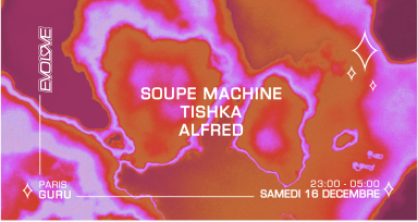 Hi Loves! Après avoir célébré Halloween avec vous au Guru nous vous y re-donnons rendez-vous pour fêter Noël en excellente compagnie avec la team Soupe Machine qui nous régalera d'un set garanti only gourmandises! ❄️ Une déco 100% esprit de Noël, des ateliers, des cocktails spéciaux pour l'évènement et de l'excellente musique jusqu'au bout de la nuit, voilà le programme qu'on vous offre pour se réchauffer auprès de nous en cette fin d'année! 🎄 -- Artists -- Soupe Machine SC: https://soundcloud.com/soupe-machine IG:https://www.instagram.com/soupemachine/ FB:https://www.facebook.com/soupemachine Alfred (Evolove Music) Insta : https://instagram.com/dltpn_ SC : https://soundcloud.com/dltpn Tishka (Evolove Music) Insta: https://www.instagram.com/tishka_mangroove/ SC: https://soundcloud.com/mangroovers — INFOS PRATIQUES — 🗓️ SAMEDI 16 DECEMBRE 2023 🕰️ 23h00 - 5h00 🔊 Void Acoustics Soundsystem 📍 36 boulevard de la bastille 75012 PARIS 🎫 Prévente 5€ - Sur Place 8€ - Capacité limitée