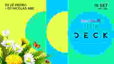 A @festadeck é o sunset mais delicioso de São Paulo e vai acontecer nesse sábado, dia 16 de Setembro, nossa próxima edição. Sempre ao ar livre no Guest Urban Hotel com os DJ’s tocando o melhor da house music e do pop para um público cujo perfil é a pluralidade, onde cabem todas as idades e comportamentos. Neste sábado, teremos A DUPLA, o nosso consagrado DJ ZÉ PEDRO e o AMADO DJ NICOLAS ABE, comandando as pick-ups.