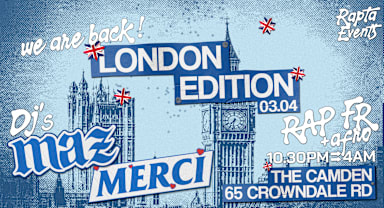 RAPTA revient à Londres, après le succès de la dernière édition SOLD OUT ! Vendredi 3 avril ❗️ 📍 The Camden, 65 Crowndale Rd, London NW1 1TN RAPTA a déjà marqué les nuits Paris, Montréal, Sydney, Melbourne, Toronto, Barcelone, Madrid, Lisbonne. Aux platines : DJ Merci (@mercipourlamisique) et Maz (@iammazmusic)prêt à enflammer le club avec le meilleur du rap français et quelques touches afro pour garder l’énergie au max. 🔥 Good fit only 👑 🎟️ Billets disponibles dès maintenant – ça part vite.
