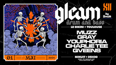 𝗚𝗟𝗘𝗔𝗠 𝗫𝗜𝗜 𝘄/ 𝗠𝗨𝗭𝗭, 𝗚𝗥𝗔𝗬, 𝗬𝗢𝗨𝗣𝗛𝗢𝗥𝗜𝗔, 𝗖𝗛𝗔𝗥𝗟𝗜𝗘 𝗧𝗘𝗘 & 𝗤𝗩𝗘𝗘𝗡𝗦 • 𝗟𝗲 𝗕𝗶𝗸𝗶𝗻𝗶 𝗥𝗲𝗴𝗮𝗿𝘁𝘀 𝟮𝗻𝘂𝗶𝘁 𝗽𝗿𝗲́𝘀𝗲𝗻𝘁𝗲 𝗚𝗟𝗘𝗔𝗠 𝗫𝗜𝗜 𝘄/ 𝗠𝗨𝗭𝗭, 𝗚𝗥𝗔𝗬, 𝗬𝗢𝗨𝗣𝗛𝗢𝗥𝗜𝗔, 𝗖𝗛𝗔𝗥𝗟𝗜𝗘 𝗧𝗘𝗘 & 𝗤𝗩𝗘𝗘𝗡𝗦 (𝗗𝗻𝗕, 𝟭𝟰𝟬, 𝗗𝘂𝗯𝘀𝘁𝗲𝗽) « 𝐿𝑒 𝑑𝑒́𝑚𝑜𝑛 𝑑𝑢 𝑚𝑎𝑙 𝑒𝑠𝑡 𝑙'𝑢𝑛 𝑑𝑒𝑠 𝑖𝑛𝑠𝑡𝑖𝑛𝑐𝑡𝑠 𝑝𝑟𝑒𝑚𝑖𝑒𝑟𝑠 𝑑𝑢 𝑐𝑜𝑒𝑢𝑟 ℎ𝑢𝑚𝑎𝑖𝑛 » - 𝐸𝑑𝑔𝑎𝑟 𝐴𝑙𝑙𝑎𝑛 𝑃𝑜𝑒. Gleam : n.f. - Lueur fugitive où basses et rythmes incisifs fusionnent en une transe absolue. 🌠 Depuis 12 éditions, 2nuit explore les recoins les plus sombres de la Drum & Bass et Dubstep. Pour ce nouvel acte au Bikini, le prisme se fragmente : prépare-toi à une onde de choc sensorielle dans le temple du son toulousain. Là où la lumière ne naît que de la puissance du kick. 💿 𝗟𝗜𝗡𝗘 𝗨𝗣 MUZZ ☆ 🎧 https://soundcloud.com/muzzhq 👉 https://www.instagram.com/muzzhq/ GRAY ☆ 🎧 https://soundcloud.com/gray_music 👉 https://www.instagram.com/graydnb/ YOUPHORIA ☆ 🎧 https://soundcloud.com/youphoriadnb 👉 https://www.instagram.com/youphoria.dnb/ CHARLIE TEE ☆ 🎧 https://soundcloud.com/charlieteedj 👉 https://www.instagram.com/charlieteedj/ QVEENS ☆ 🎧 https://soundcloud.com/qveensofficial 👉 https://www.instagram.com/qveensofficial/ ―――――――――――――――― 𝗧𝗔𝗥𝗜𝗙𝗦 ⏳ EARLY : 17 € REGULAR : 20 € LATE : 22 € SUR PLACE : 22 € ―――――――――――――――― 𝗕𝗜𝗟𝗟𝗘𝗧𝗧𝗘𝗥𝗜𝗘 🎫 https://shotgun.live/events/gleam-w-muzz-gray-youphoria Pour éviter les arnaques, privilégiez l’usage d’une plateforme de revente sécurisée. ―――――――――――――――― 𝗜𝗡𝗙𝗢𝗦 𝗣𝗥𝗔𝗧𝗜𝗤𝗨𝗘𝗦 📅 Vendredi 1er mai 2026 🕢 23h55 - 05h30 📍𝗟𝗲 𝗕𝗶𝗸𝗶𝗻𝗶 Accès par Vélib', Uber, Bus, Métro Ⓜ Ligne B - Ramonville Saint-Agne Parc Technologique du Canal, Rue Théodore Monod - 31520 Ramonville-Saint-Agne 𝑁𝐸𝑊 : 𝗹𝗮 𝗻𝗮𝘃𝗲𝘁𝘁𝗲 𝗰𝗹𝘂𝗯 𝗱𝘂 𝗕𝗶𝗸𝗶𝗻𝗶 𝗮̀ 𝟮€. ℹ️ https://lebikini.com/section/infos-pratiques/la-navette-du-bikini ―――――――――――――――― 𝗥𝗔𝗣𝗣𝗘𝗟𝗦 𝗨𝗧𝗜𝗟𝗘𝗦 Le consentement : - doit être volontaire : CÉDER (face à l’insistance, la pression, le chantage affectif, etc.) N'EST PAS CONSENTIR. - doit être clair : L’ABSENCE DE REFUS ne vaut PAS CONSENTEMENT. En cas de doute, demandez ! - doit être donné par une personne qui a la CAPACITÉ DE CONSENTIR : une personne très alcoolisée, endormie, inconsciente ou droguée n'est JAMAIS consentante. - doit être spécifique : il est donné À CHAQUE ÉTAPE ET À CHAQUE FOIS. - est TOUJOURS RÉVOCABLE : on peut changer d'avis À N’IMPORTE QUEL MOMENT. Tout comportement ou propos sexiste, transphobe, homophobe, lesbophobe, biphobe, sérophobe, validiste, raciste, putophobe, grossophobe, classiste, est bien évidemment à proscrire et entraînera une exclusion de notre événement. 𝘴𝘰𝘶𝘳𝘤𝘦 @𝘧𝘦𝘵𝘰𝘯𝘴𝘱𝘭𝘶𝘴𝘳𝘪𝘴𝘲𝘶𝘰𝘯𝘴𝘮𝘰𝘪𝘯𝘴 @𝘢𝘤𝘵'𝘶𝘱 𝘴𝘶𝘥