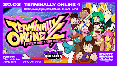 OUVERTURE DES PORTES : 00h00. °⚠︎°。。°⚠︎°。WARNING。°⚠︎°。。°⚠︎°。 HYPERCORE PRESENTS : 📲🛜𝔗𝔢𝔯𝔪𝔦𝔫𝔞𝔩𝔩𝔶 𝔒𝔫𝔩𝔦𝔫𝔢 4 🌐👩🏻‍💻 HYPERCORE x 909 WORLDWIDE x LE LAP For our 4th addition we’ve collaborated with the one and only 909 worldwide for a night of internet kicks n bounces in the club! 🤯 And if that wasn’t enough, we’ll be opening the 2nd floor with Le LAP to bring their rhythm game arcade to Petit Bain 😎 Alice Gas (909 worldwide) 99jakes (909 worldwide) TSM-3 (the sigmatus (909 worldwide, illegal bitrate) x Æ/F) (live) Dr4kken (live) tmagyk (hypercore) dj plaisir (hypercore) DJ CAMSLUT (hypercore) Baleinestud (vj hypercore) tel.mele (vj hypercore) PLAY 2 THE RHYTHM LET THE BODIES HIT THE DANCEFLOOOOOOOOOOOOOR + donation prix libre for access to the arcade, suggested €5 (on site, must have a ticket to the event) 🎨 poster credits : srtnn (illustration) echographic (logo & additional graphic design) ---------------------------------------------------------------------- Petit Bain est un lieu festif et accueillant. Il défend des valeurs d’égalité, de partage, de respect et de bienveillance. Toute l’équipe défend ces valeurs et nous invitons vivement que les publics, artistes et collaborateurs·rices du lieu en fassent de même. L'organisation ne tolère aucun comportement agressif, violent ou discriminant et se voit en possibilité d'entraîner le refus d'entrée ou l'expulsion (sans remboursements). - Interdit aux moins de 18 ans -
