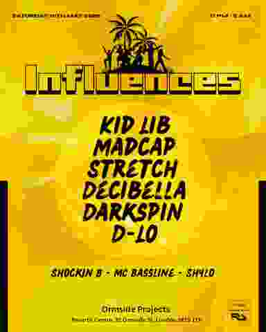Influences returns for another night of jungle flavours at our new location in South London - Ormside. Making his debut is the one and only Kid Lib of Green Bay Wax! This man needs no introduction as his tunes and sets have been mashing up the place for a long time. With releases on many of the biggest jungle labels in existence, including Future Retro and AKO Beats, you can expect an hour of some absolutely amazing jungle. Kid Lib has a meticulous approach to his set curation, this one is not to be missed! Alongside our usual bunch of selectors, legendary label, Creative Wax owner, Madcap returns for the first time since our first event. We waited to long to be honest. Expect a top notch selection and maybe a little bit of scratching from this master of the art of mixing! As always we have the Don of scene, DJ Stretch, blessing us with his usual Influences style jungle selection. His sets are always jam packed with unreleased dubs consisting of many of the biggest tracks to bless a sound system. Its smiles for miles and always a highlight! Decibella constantly adds a delicate touch to our nights, but don't think she wont drop some absolutely devastating tunes, bringing the rough with the smooth of her particular style and fashion! Darkspin is a firm favourite who always supports the industry artists, big and small! Expect dubs and rugged flavours, lots of familiar soul samples incorporated into contemporary 165bpm tunes, as well as some rough neck ragga vocals. He knows the code! D-Lo will be digging deep, bringing his usual old school 94/95 jungle selection, instilling familiarity for the OJs and an education for the newcomers. Our MCs will be hosting with a variety of styles and personalities. Bringing fun, jokes and musical knowledge to the narration of the night! Big up to Shockin B, MC Bassline and Shylo!!! Be Cool - Be Nice - Be Family