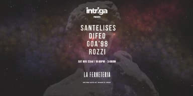 This lineup hits all the right notes: Santelises leading the charge, Rozzi making a long-awaited return, Goa 98 holding it down as one of our residents, and Diféo stepping in for his first Intriga appearance already making noise across the scene. The balance between familiar energy and new fire is exactly what makes these nights feel different.