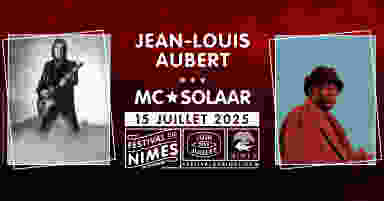 etrouvez JEAN-LOUIS AUBERT & MC ★ SOLAAR, deux icônes de la scène musicale française, le Mardi 15 Juillet 2025 au Festival de NÎMES !