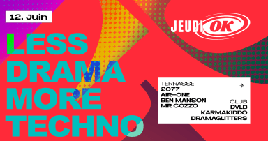 Jeudi OK reçois LDMT à l'occasion de ses 10 ans Tout comme Jeudi OK il ya dix ans, Less Drama More Techno voyait le jour à Paris, portée par une vision simple mais puissante : créer un espace de respect, de libertée où la techno réunit les corps, les esprits et les cœurs dans une même pulsation, loin des jugements et des étiquettes. Depuis, LDMT est devenu bien plus qu'un rendez-vous nocturne : c'est une famille. Depuis 10 ans et ce à chaque édition Less Drama More Techno a accueilli des DJ iconiques et des artistes émergent·e·s de Boris du Berghain a Litoshka de Body Fluid ou encore Clark Kent du KitKatClub, Samantha Togni de Boudica, Spikey Lee des Kinky Sundays, … LDMT a construit des ponts entre les scènes, fait vibrer des lieux cultes et éphémères, et surtout, a fait danser des milliers de clubbers de toutes les générations et toujours, cette ligne directrice : la techno, sans le drame ! À l'heure où les espaces sûrs sont plus essentiels que jamais, LDMTreste un phare dans la nuit, fidèle à ses valeurs d'inclusivité, de bienveillance et de puissance collective. LINE UP BEN MANSON https://soundcloud.com/djbenmanson AIR-ONE https://soundcloud.com/airone-music 2077 https://soundcloud.com/2077bpm MR COZZO https://soundcloud.com/mrcozzo DVLB https://soundcloud.com/dvlb333 KARMAKIDDO https://soundcloud.com/karmakiddo_music DRAMAGLITTERS https://soundcloud.com/dramaglitters