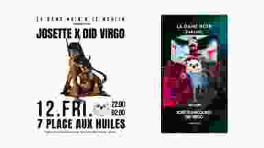 JOSETTE (MACCA BUS) DID VIRGO (La dame NOir Rds) NU DISCO, INDIE DANCE & TECHNO ALL NIGHT LONG GRATUIT EN TELECHARGEANT VOTRE BILLET SUR SHOTGUN OU 10E A LA PORTE.