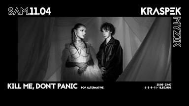 ▷▷▷ 𝕂𝕀𝕃𝕃 𝕄𝔼, 𝔻𝕆ℕ'𝕋 ℙ𝔸ℕ𝕀ℂ ᴘᴏᴘ ᴀʟᴛᴇʀɴᴀᴛɪᴠᴇ 𝘽𝙞𝙤 // Kill Me, Don’t Panic est un appel au lâcher prise. Telle une véritable décharge émotionnelle, le duo Pop alternative livre un message cathartique, où conflits intérieurs et acceptation de soi s’entrechoquent. À la dérive de la réalité et aux frontières des songes, les deux membres s’adonnent tout entier à la scène, figeant une douce folie sur les visages et dans les esprits. ———————————— 𝗜𝗡𝗙𝗢𝗦 𝗣𝗥𝗔𝗧𝗜𝗤𝗨𝗘𝗦 ⇨ 𝗞𝗥𝗔𝗦𝗣𝗘𝗞 𝗠𝗬𝗭𝗜𝗞 🏘 20 Montée St-Sébastien, 69001 Lyon ⏰ Ouverture des portes à 20:00 💸 6 · 8 · 9 · 11 · 16,5 + 2€ Adhésion à l'association Lerockepamort ⇨ 𝗣𝗢𝗨𝗥 𝗩𝗘𝗡𝗜𝗥 𝗔𝗨 𝗖𝗢𝗡𝗖𝗘𝗥𝗧 🚟 Métro A - arrêt Hôtel de Ville Louis Pradel Métro C - arrêt X-Paquet 🚌 Bus S6, S12 - arrêt Table Claudienne C3, C4, C5, C6, C13, C14, C18 - Arrêt Hôtel de Ville Louis Pradel 🚲 Velo'v - Place Tolozan & Quai Lassagne