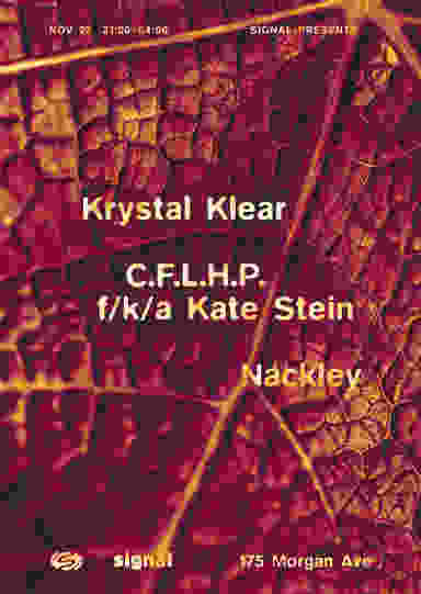 Slow builds and steady rolls mark tonight. NYC fan favorite and selector Nackley starts it all off with some crispy minimalism (yeah) and dubbed out house, that’ll cast a thick haze before it blasts you from gloam into night. C.F.L.H.P. f/k/a Kate Stein follows that casted shadow, tiptoeing between light and dark, but spanning rolling percussion and murky psychedelia for a cosmic awakening. It’s all the perfect tee up for Irish groover and high octane blender, Krystal Klear. Over the past 15 years, with releases on Running Back, UTTU, Madtech, Eglo, All City, and more, he’s solidified himself as a guy who KNOWS how to breeze from boogie-soaked house to driving techno with polish and ease. Phew.