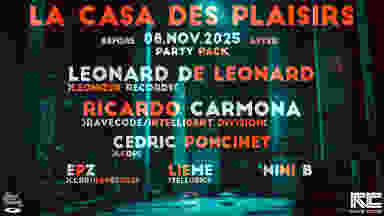 La Casa des Plaisirs est de retour avec un line-up aux petits oignons, dans un format intimiste et explosif ! Toujours avec le souci de mettre en avant notre famille Techno made in Colombie, nous avons l’immense honneur d’accueillir Ricardo Carmona, pour la toute première fois en France ! Un des membres fondateur du collectif Intelligent Division à Medellín, "Richie" est l’un des pionniers de la scène techno colombienne. À travers leurs événements hors normes (Medellín Techno Festival), la création de clubs (MUTE) et leur Academia Decibel dédiée à la formation des jeunes DJs, ils ont façonné et propulsé la culture techno dans leur pays. Pour marquer ce moment exceptionnel, nous avons le privilège d’avoir à nos côtés Léonard de Léonard, véritable légende des dancefloors de Paris à Berlin. Il enflammera le dancefloor avec un set survolté dont lui seul a le secret, préparez-vous à être Leonizer !! À leurs côtés, nos amis bordelais LieMe (Telluric) et Nini B, sans oublier nos résidents de cœur : Cédric Poncinet et EpZ, pour compléter ce plateau d’exception. Sound/Déco/Visual by La Skud Family Trois formats pour une nuit unique : BEFORE : 9PM – 2AM → 10 € (+Frais Loc) AFTER : 7AM – 11AM → 10 € (+Frais Loc) Surprise Party Pack (BEFORE ++ AFTER) : 15 € (+Frais Loc) Attention : places limitées ! Ne manquez pas cette nuit inoubliable.