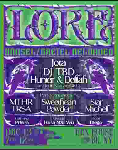 Folktales on the dancefloor. Performance at the rave. Narration over music. And you're the main character. LORE is an event series that re-imagines storytelling through parties. Music, narration, performances, and visuals combine to re-tell a classic folktale—in this case, the story of Hansel and Gretel, who you are invited to become for the evening. The Narrator tells your story in time to a DJ set punctuated with pop-up performances by local artists. Custom lighting, visuals, and scenic installations immerse you in the tale as you mingle and dance. Together, we'll re-write a "happy ever after" that never was. Secret East Williamsburg Location: Address will be sent to ticket-holders! ACCESSIBILITY: Venue is wheelchair-accessible with no stairs, but bathroom is not ADA compliant. $25 Early / $30 GA / $40 at the door