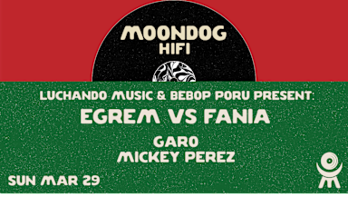 Luchando Music & BeBop Porú bring a heavyweight vinyl face-off to Moondog: Egrem vs. Fania. From Havana’s storied grooves to New York’s salsa revolution, this night traces Afro-Cuban roots and Latin diaspora fire through two legendary catalogs—Egrem Records and Fania Records—served up with deep knowledge and dance-floor love. DJs Garo and Mickey Perez trade selections across eras, styles, and tempos, letting the rhythms speak for themselves in a warm, high-fidelity setting.