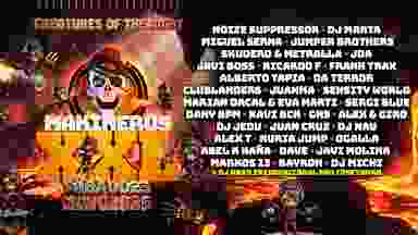 Makineros XXL aterriza de nuevo en Fabrik, con "Criaturas de la noche". Donde las criaturas del submundo de la fiesta vienen a apoderarse de la pista de baile, ritmos Makina, Dance, Poky, Newstyle y Hardcore nos harán bailar durante 12h de fiesta en 3 zonas de baile donde reinará el buen rollo. ¡Una fiesta bestial, con criaturas nocturnas!