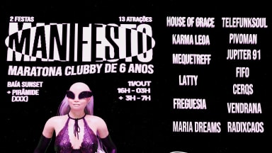 MANIFESTO MARATONA CLUBBY DE 6 ANOS 15 HORAS DE FESTA - PICOS INÉDITOS 11/OUTUBRO / 16H ÀS 07H É PRA QUEM TEM DISPOSIÇÃO comemorando 6 anos de barulho na cena, nossa próxima edição tem um gostinho especial: 13 ATRAÇÕES!! reunimos a curadoria musical mais fina do brasil em um formato pra quem não tem vergonha de ser gulosa. 11 DJS: HOUSE OF GRACE @houseofgrace____ TELEFUNKSOUL @telefunksoul KARMALEOA @karmaleoa PIVOMAN @pivoman777 MEQUETREFF @mequetrefff JUPITER 91 @jupiter_91 FIFO @filiperseabra LATTY @latty_______ CERQS @djcerqs FREGUESIA @cayfreguesia VENDRANA @djvendrana 2 PERFOS; RADIXCAOS @radixcaos MARIA DREAMS @mariadreams.br SÃO 15 HORAS DE FESTA: começando no baía sunset, espaço que muitas da cidade conhecem de outros carnavais, a mani vai invadir e criar novos momentuxos. começando às 16h, sunset delícia, sol na pele, som na mente e uma vista privilegiada da baía de todos os santos. traga a sua cybershot para esse momentinho tumblr!!!! +++++++ “ah mas eu sou gótica” a mani também pensa em você! 🫵🫵🫵 a noite cai e a pista 2 do nosso fervo abre com um eletrônico babadeiro pra quem curte um grave batendo no escuro. tem pra todes até as 03h!!!! a mani é a sua melhor amiga!!!! “ah eu quero after” o aniversário é nosso mas quem ganha o presente é VOCÊ 🫵🫵🫵 after oficial na pista XXX da PIRÂMIDE SALVADOR, de 3h às 7h, pra quem é cavalona e vai até o fim! É O PASSAPORTE DA ALEGRIA ingressos disponíveis @shotgun.br arte: @uiuder_