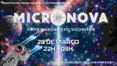 Micronova returns to Micro Club, for a intergalatic journey. In command of our spaceship we can count as headliners with a really promising b2b, alongside with what we consider a great producer and dj of our scene, followed by a expectant warm up from our residents. Our commanders in chief: Johan b2b Gear Nebulaee Mushimi b2b Soberdrunkid Don't miss the departure of our spaceship