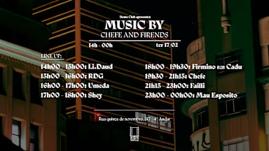 O Home Club nasce da proximidade: pista próxima, luz baixa, escuta ativa.
