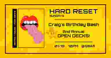 Our annual Open Decks night is back for Craig's birthday bash! We are featuring some of our out-of-town DJs who came up for the weekend, including Jonny Canas and Mark Irwin. Giovanni Sainz and Summers will help fill time. But we want to hear from all of the other DJs who have played Hard Reset or would like to join our roster! We'll even get you a drink if you play us a few tunes ;-)