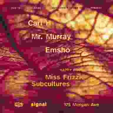 Nine years of OUTWATCH will unfold at Signal. Carl H will arrive from the UK with the sound of Animals on Psychedelics — his records will ripple and fold, weaving deep, hypnotic layers with moments of strange, drifting melody that pull the room into unexpected currents. Miss Frizzle (LA) and Subcultures will move through the early happy hour, layering warm pulses with playful distortions and fractured beats, setting currents that pull the evening into shadow and motion. Ladies on Wax resident and Iranian-born Emsho will dig into deeper techno, threading tension and release through rolling basslines and jagged synth textures, before Carl H takes the stage. Mr. Murray will close the night, weaving synth-driven soundscapes, warm chords, and crisp percussive hits that linger long after the final record drops. The night will drift around familiar faces, across the floor, carried in sound.