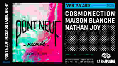 ▬▬▬▬▬▬ GUESTS COSMONECTION Dans le sillage de la nouvelle scène house émergente en France ces dernières années, Cosmonection s'est rapidement fait une place grâce à ses sorties et ses sets aux sonorités deep,balearic et afro-house. Décrit par Mixmag comme "l'un des producteurs du moment à suivre", sa discographie parle d'elle-même avec des EP sur des labels prestigieux tels que Pont Neuf Records. MAISON BLANCHE Imprégné de l'héritage de la house de Chicago et de Detroit, Maison Blanche est un habitué de lieux emblématiques parisiens tels que le Rex Club, Djoon, La Machine et Badaboum, faisant de lui une figure incontournable de la scène underground parisienne. Il a sorti ses premiers EPs sur Sengiley et Wilson Records en 2021, suivis d'un maxi sur House of Underground. Depuis fin 2023, l’artiste parisien a lancé deux nouveaux EPs résolument orientés house sur Pont Neuf Records, s'imposant comme l'un des artistes de la nouvelle génération française à suivre de près. NATHAN JOY Artiste, DJ, Programmateur et figure emblématique de la musique électronique à Biarritz. A quoi s'attendre : Le temps et l'espace changent, le monde objectif se dissout et le corps perd sa forme. Parmi les sept arts, la musique est le seul à pouvoir ébranler immédiatement les gens dans un voyage sublime à travers le son. ▬▬▬▬▬▬ BILLETTERIE Early 8€ • disponible jusqu'à 48h avant le début de l'événement. Regular 14€ • Équivalent au tarif sur place, l'achat d'un billet en ligne vous sert de coupe file à l'entrée ▬▬▬▬▬▬ INFOS PRATIQUES — Événement interdit aux mineur·es — Envie d'arriver plus tôt dans la soirée ? Ouverture du bar et de la terrasse dès 18h — Pièce d’identité obligatoire : Carte d’identité, passeport, permis de conduire (photo non-acceptée) Pour venir à La Rhapsodie : Ⓑ Bus Ligne 5 : arrêt Z.A. Biarritz (devant le lieu) Ⓑ Bus Lignes 6, 38, 46, 51, 52, 108 : Arrêt Gare de Biarritz (à 500 mètres du lieu) Ⓥ Velo : parking à vélo Code promo pour venir avec les vélo en libre service Pony : LARHAPSODIE2024 Ⓥ Voiture : parking relai Iraty (à 280 mètres du lieu) Tous les comportements discriminatoires, tels que le racisme, l'homophobie, la transphobie, le sexisme et la haine, sont strictement interdits dans notre établissement.
