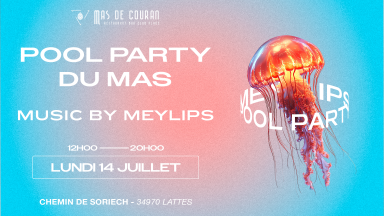 Prépare-toi pour LA pool party de l’été ! Ambiance survoltée, soleil, bassin turquoise et good vibes au Mas de Couran. Aux platines, la talentueuse MEYLIPS te fera danser non-stop de 12h à 20h.