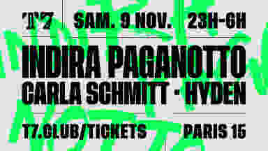 T7 x INDIRA PAGANOTTO 23h00 - 06h00 🟢 INFOS PRATIQUES Vaste fumoir extérieur Vue imprenable sur la capitale et la Tour Eiffel Nouveau sound-system 100% L-Acoustics 🟢 INFO BOOKING TABLE Booking Table : 5 vip backstage tables available, minimum spend 1500 € via ce lien : https://form.typeform.com/to/YhCXbMu2 🟢 INFO BOOKING TABLE Booking Table : 5 vip backstage tables available, minimum spend 1500 € via ce lien : https://form.typeform.com/to/YhCXbMu2 🟢 ACCÈS Paris Expo Porte de Versailles - Porte D Place des insurgés de Varsovie 75015 - Paris Métro : Porte de Versailles (entrée à 400m) Bus : 89 - Théâtre de la Plaine - Guillaumat (entrée à 50m) 🟢 SUIS-NOUS SUR INSTA ET TIKTOK ! https://www.instagram.com/t7paris https://www.tiktok.com/@t7paris 🔞 Établissement interdit aux mineurs (contrôle d'identité avec pièce d'identité originale valide et non présentée sur téléphone)
