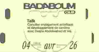 Samedi 04 Avril // 17H00-18H30 ——————————————————— Concilier engagement artistique et développement de carrière avec Deena Abdelwahed et Vel ——————————————————— À l'occasion de sa deuxième tournée, Courts Circuits s'associe au Badaboum pour proposer une rencontre avec les deux artistes accompagnées par le projet jusqu'à maintenant : l'artiste marocaine Vel et l'artiste tunisienne Deena Abdelwahed. Entre club culture, expérimentations sonores et trajectoires internationales, ces deux artistes partageront leurs pratiques, inspirations et réalités de la scène électronique aujourd’hui. Comment développer un projet artistique dans des conditions soutenables — pour soi, pour les autres, et pour la planète ? Peut-on concilier tournées éco-responsables et circulation internationale ? Comment affirmer un engagement artistique et politique tout en continuant à soutenir les scènes locales ? Cette discussion est proposée par Courts Circuits, une initiative portée par Technopol en collaboration avec Music Declares Emergency France et DJs for Climate Action France. Le projet vise à promouvoir l’adoption du slow touring, c’est-à-dire des pratiques de tournées artistiques décarbonées et mutualisées, qui auront lieu entre 2025 et 2028 partout en Europe. Lauréat de l’Appel à projets Alternatives Vertes, le projet Courts Circuits est financé par le Gouvernement dans le cadre de #France2030, conçu en lien avec le Secrétariat général pour l’investissement et le ministère de la Culture, et opéré par la Banque des Territoires pour le compte de l’État. Le projet bénéficie également du soutien de la Commission européenne à travers son programme LiveMX. ——————————————————— BADABOUM 2 Rue des Taillandiers — 75011 Paris ———————————————————