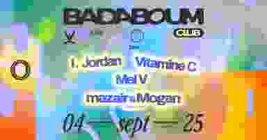 Jeudi 4 Septembre - 23H30-06H00 CLUB — TDN: I. Jordan, Mel V, Vitamine C, Mazair & Mogan (hybrid live) CAPSULE — TBA ——————————————————— FREE ENTRANCE FROM 4:30AM Info & Reservation : badaboum.paris ——————————————————— BADABOUM 2 Rue des Taillandiers — 75011 Paris ——————————————————— FR: L’accès à l’événement est interdit aux personnes mineures. Une pièce d’identité pourra être exigée à l’entrée. L’établissement se réserve le droit de refuser l’entrée. Fête libre, inclusive et safe. Nous offrons un espace respectueux où chacun peut s’exprimer librement. Tout comportement discriminatoire (homophobie, transphobie, racisme, misogynie, etc.) entraînera l’exclusion et des poursuites. EN: Access to the event is forbidden to minors. Identification may be required on entry. The venue reserves the right to refuse entry. A free, inclusive and safe party. We offer a respectful space where everyone can express themselves freely. Any discriminatory behaviour (homophobia, transphobia, racism, misogyny, etc.) will result in exclusion and prosecution.
