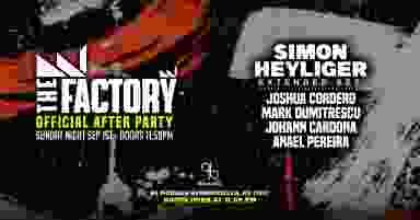 The Factory After party Bringin the iconic Ibiza party spirit to the heart of Brooklyn SIMON HEYLIGER ● talent and a renowned DJ From Brooklyn Miami and Ibiza - will be taking over the decks, delivering those irresistible vibez alongside JOSHUA CORDERO ● MARK DUMITRESCU ● JOHANN CARDONA Make sure to secure your advanced tickets to save and party till dawn! Not To be missed Doors open 11:59PM